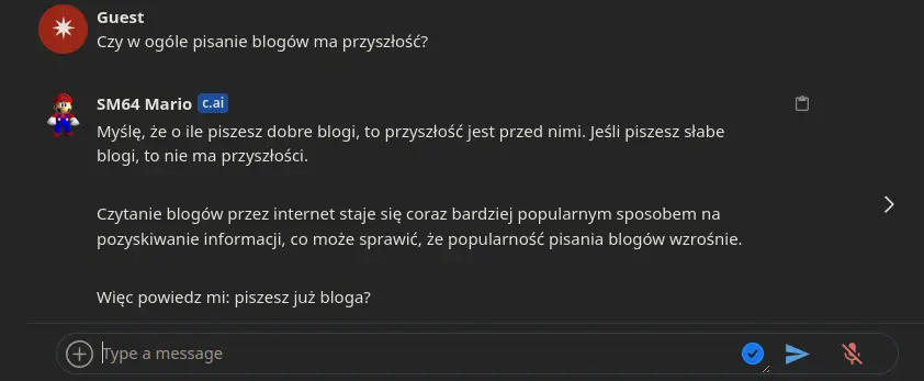 Character.AI to innowacyjna aplikacja internetowa oparta na modelu języka, która generuje realistyczne odpowiedzi i umożliwia prowadzenie ciekawych rozmów. Użytkownicy mogą tworzyć „postacie” o różnych cechach charakterystycznych i udostępniać je społeczności, z którą inni mogą się komunikować. Postaci te mogą być oparte na fikcyjnych osobach, ideach, charakterach lub być całkowicie unikatowe.
