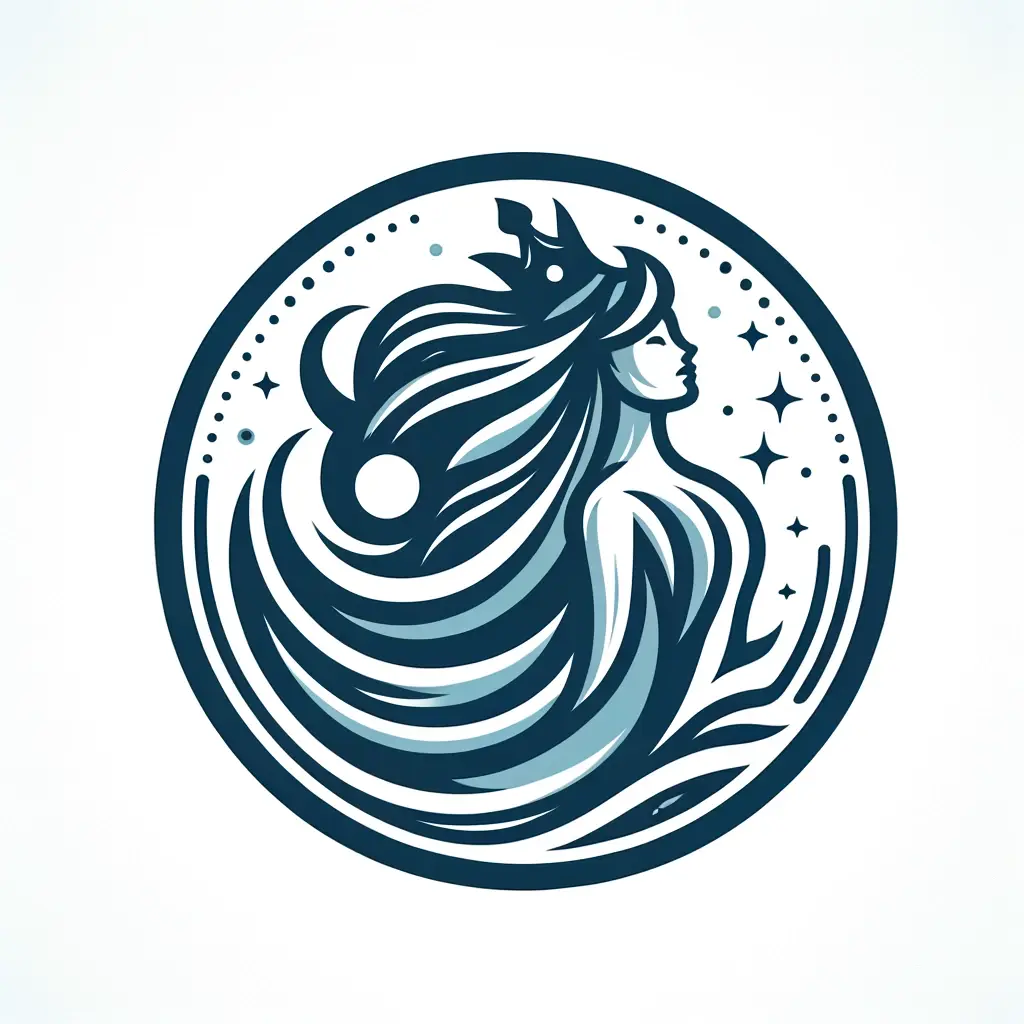 Aby stworzyć podobne logo, możemy skupić się na stworzeniu wyobrażenia z mitycznej postaci, która ma charakterystyczne cechy podobne do syreny z logo. Możemy także wykorzystać motywy morskie i gwiazdy, które są obecne w oryginalnym logo. Oto przykładowy opis, który możesz wykorzystać w DALL-E: